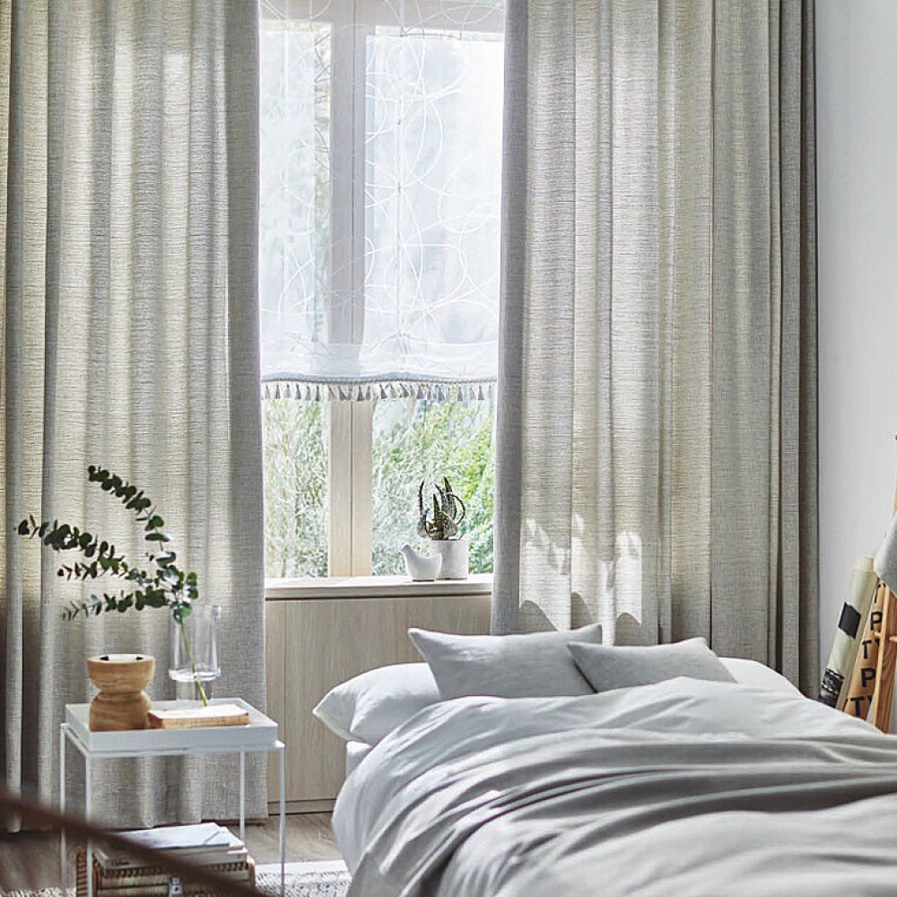 シンプルな生地を選んでトリムで個性をプラス!まさにオーダーカーテンならではの醍醐味ですね。